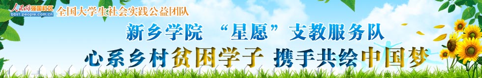 “星愿”義務(wù)支教服務(wù)隊于2009年成立,現(xiàn)有支教志愿者120余名。除多次開展暑期社會實(shí)踐支教活動外,在校期間他們還堅持每周二下午赴貧困小學(xué)義務(wù)支教活動。五年來,他們參與支教的次數(shù)達(dá)100余次,9000余小時課時。他們與新鄉(xiāng)市紅旗區(qū)平原小學(xué)、封丘縣潘店鎮(zhèn)老莊小學(xué)建立了長期幫扶關(guān)系,還在延津縣榆林鄉(xiāng)大榆林小學(xué)、夾堤小學(xué)建立了愛心支教服務(wù)基地。