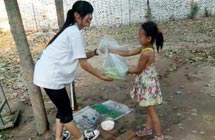 志愿者宋文靜是付里莊小學(xué)手語老師,是團(tuán)隊隊員和孩子們公認(rèn)的富有童趣的一小老師。她經(jīng)常陪孩子們做游戲,陪他們看哆啦A夢。但就是這樣一位老師,上了課堂卻像換了個人似的,非常嚴(yán)厲。志愿者王蒙苗是付里莊小學(xué)口才勵志課老師。課堂上,她認(rèn)真教學(xué),課堂下用勵志故事激勵孩子們努力學(xué)習(xí)。因為經(jīng)常照顧生病的孩子,孩子們認(rèn)為她最有愛的一個老師。志愿者孔令陵是后勤人員之一及封丘支教教務(wù)主任。她每天都會在五點(diǎn)去最近的商店買菜,然后摘菜、洗菜,做整個團(tuán)隊和部分孩子的飯菜,保障全隊生活